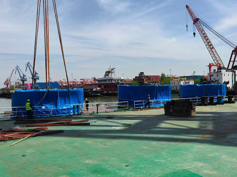 | CMEC承接荷蘭TMS公司設計松大生產的風電發電樁柱海上運輸工具樁塞今天順利裝船發運,前往荷蘭 |